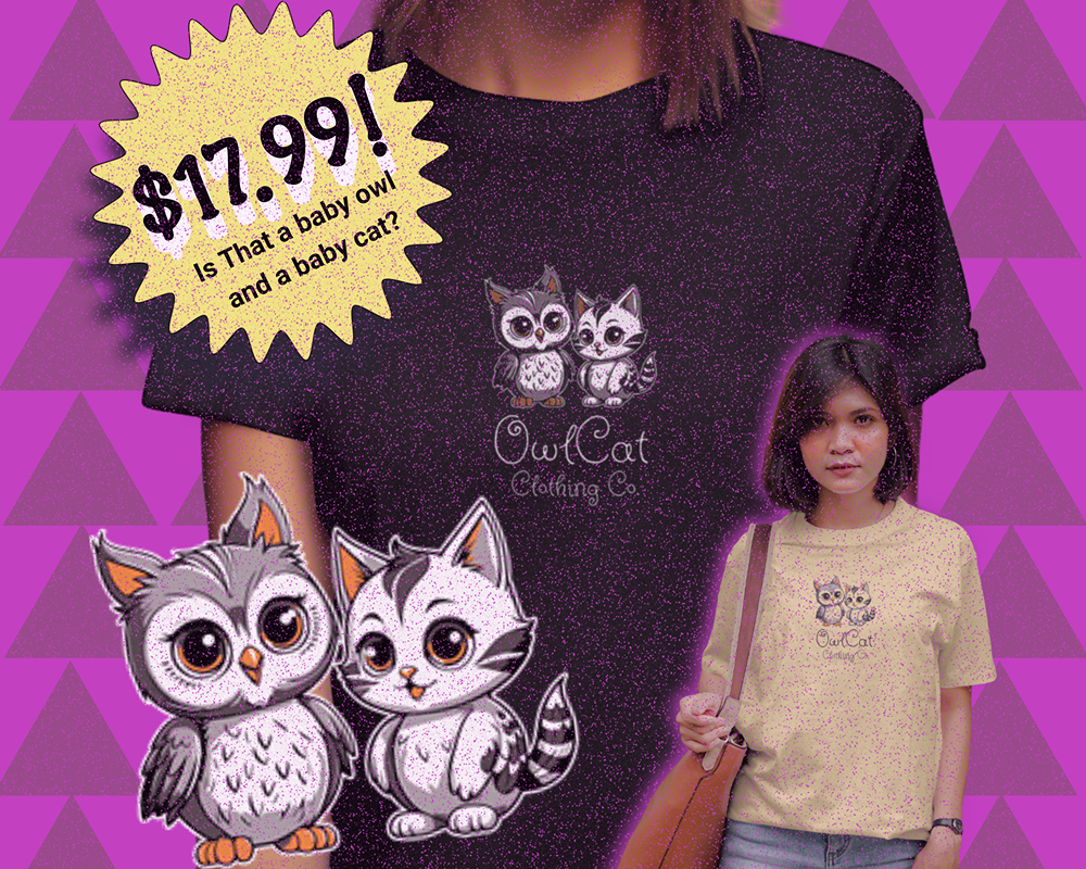 How can you resist those eyes? Rep OwlCat with a softer side. Youth sizes available on request.