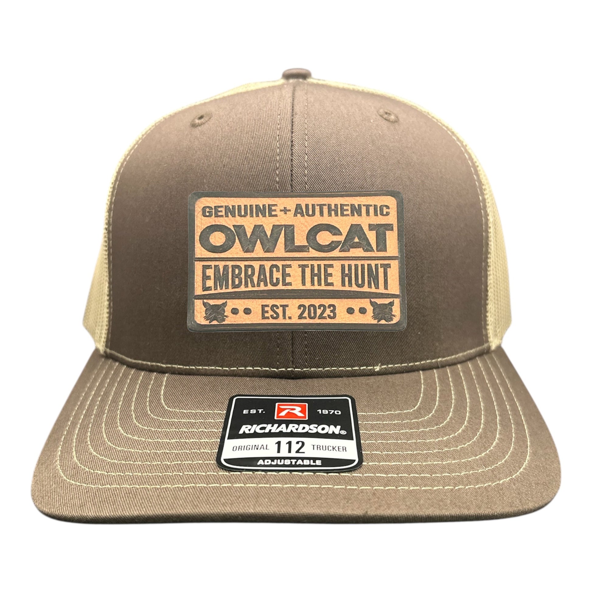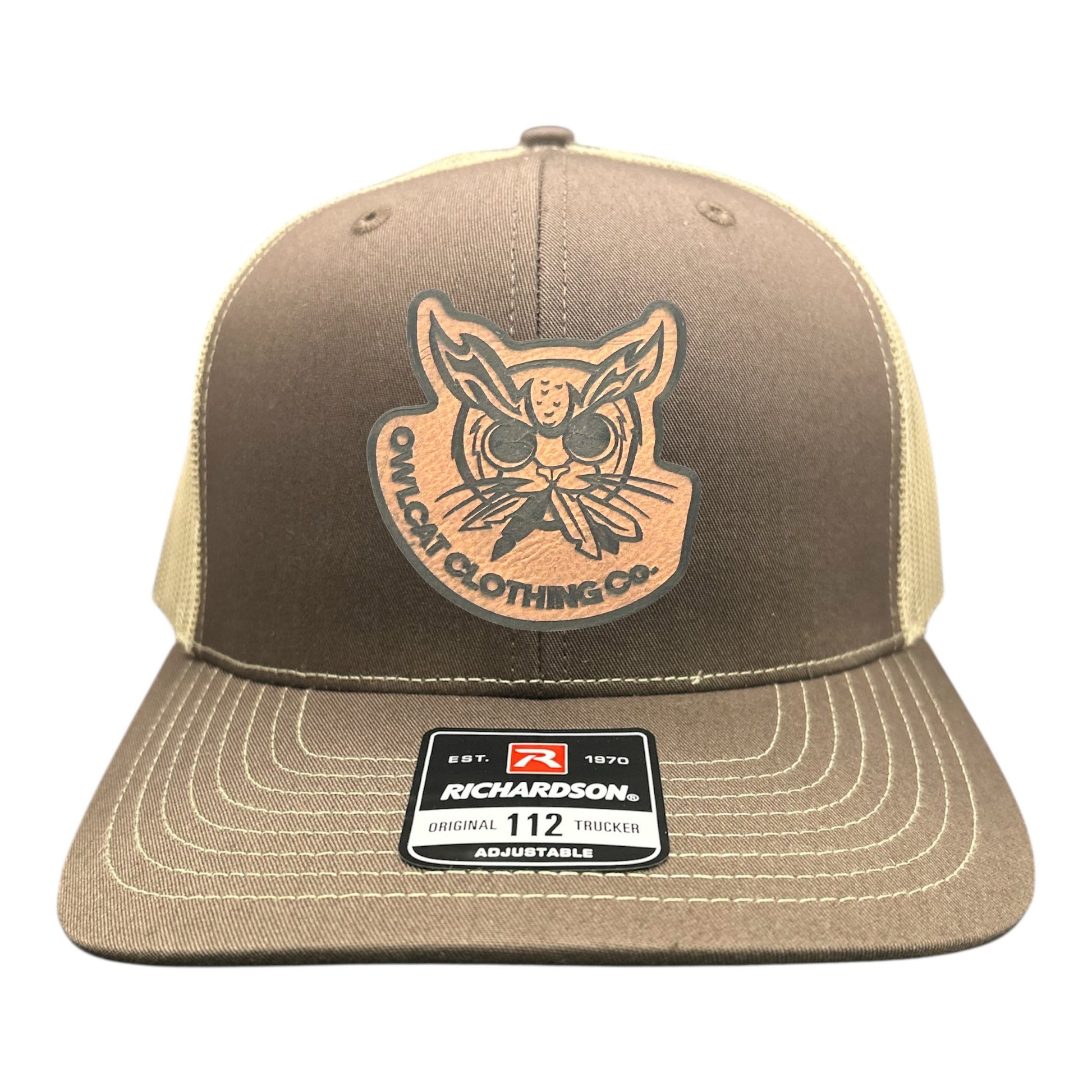 Brown with Khaki mesh trucker Leather Patch