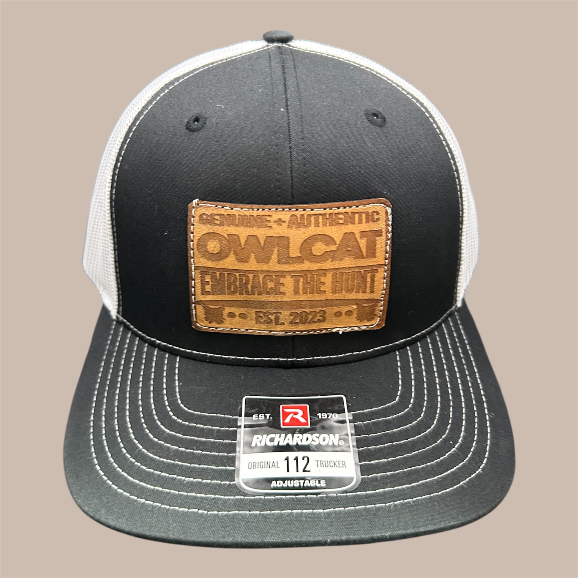 OwlCat Veg-Tan Leather Patch Hat Black/White 112- Embrace The Hunt